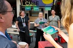 Besonders bereichernd waren die Beiträge von und Gespräche mit den beiden Hauptreferentinnen Sophie Clotterbuck und Donna Jones von der London Metropolitan University. In ihrer Keynote stellten sie konkrete Initiativen und wirkungsvolle Fallstudien vor, die zeigen, dass eine „Business as Unusual“-Denkweise Gemeinschaften und ihre Kooperationspartner:innen dazu befähigen kann, die treibende Kraft hinter sinnvollen Veränderungen zu werden. Ganz nach dem Motto "Von der Theorie zur Praxis".